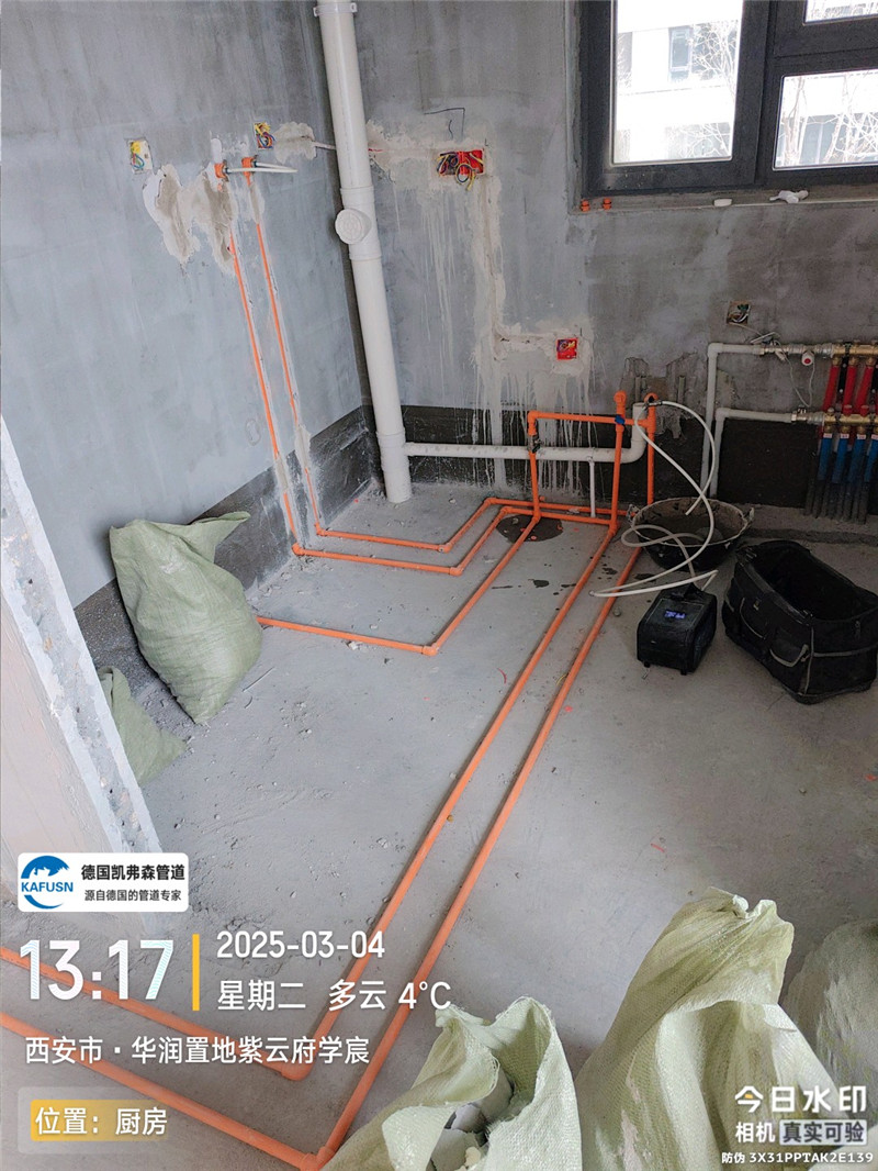 2025年3月4日西安市华润置地紫云府学宸过道厨房凯弗森水管安装